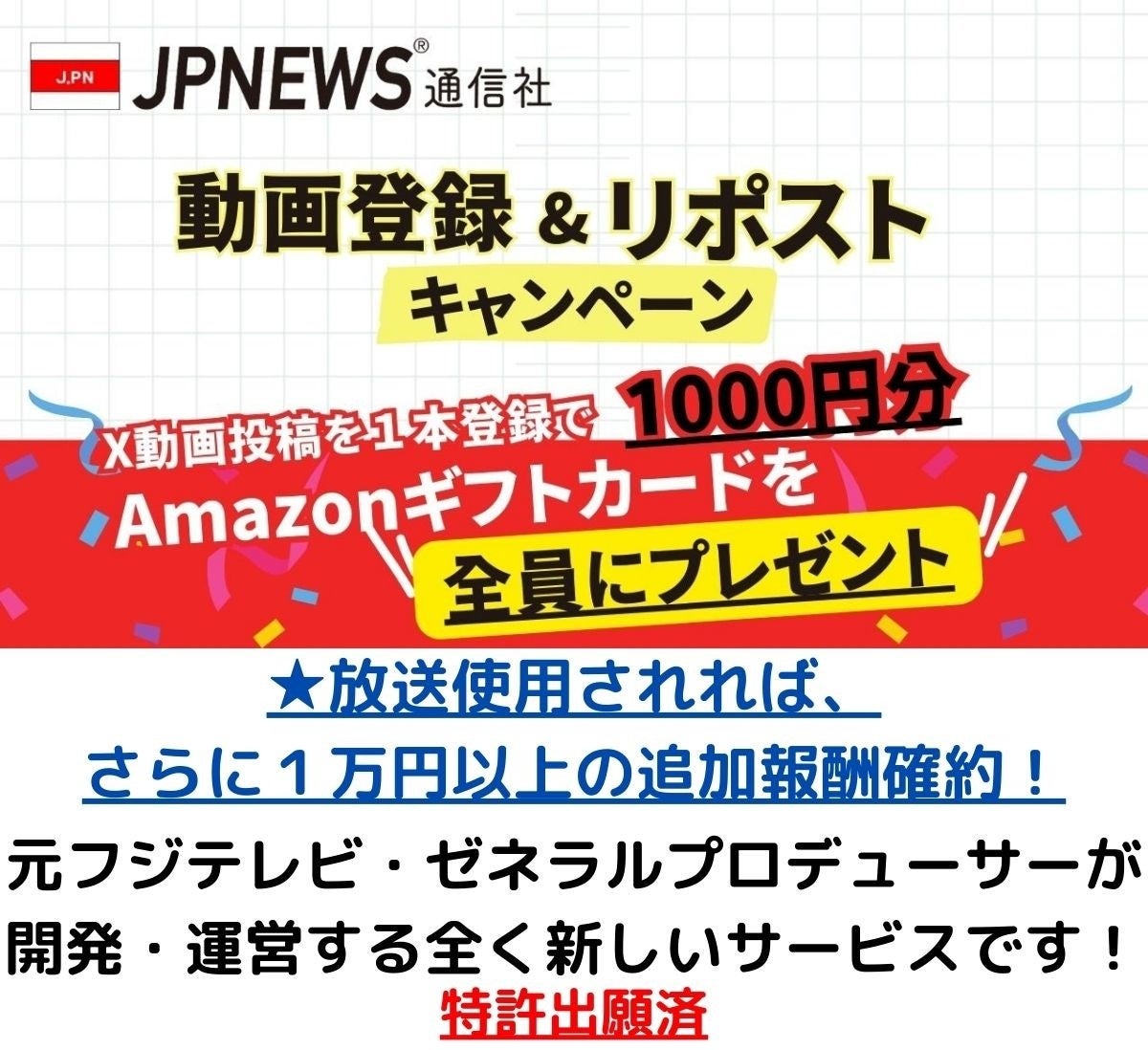 【特許技術採用】JPNEWS®通信社、X投稿した個人動画登録で全員にアマギフ1000円分プレゼントキャンペーンをスタート!