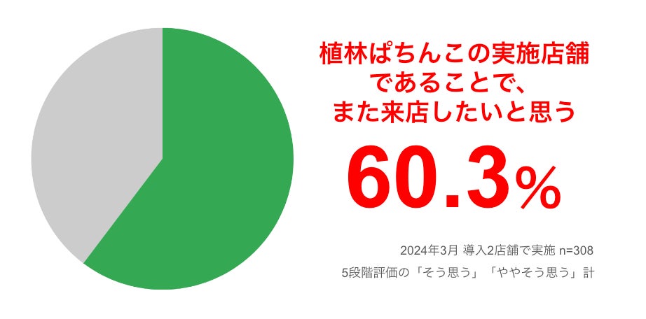 約6割のお客様が「植林ぱちんこの導入店舗であることで来店したいと思う」と回答。「勝ち負けにとらわれない来店動機」として、植林ぱちんこがお客様にも広く受け入れられ始めていると考えられます。
