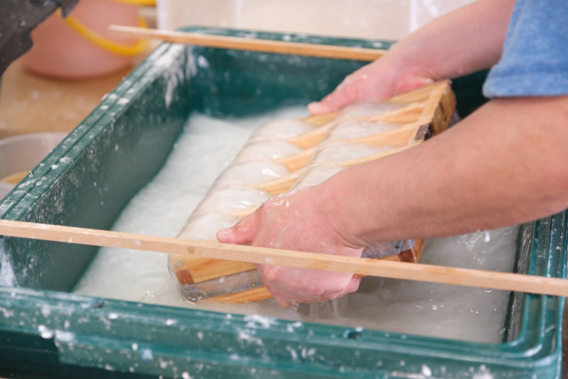 一枚一枚、丁寧に丁寧に、ゆっくりと漉き込み、