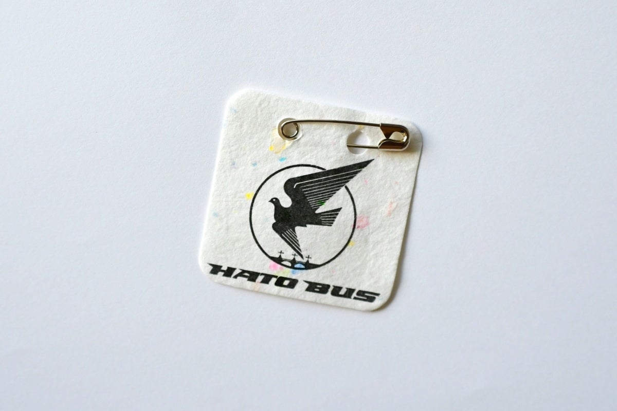 有限会社コトブキ印刷(所在地:広島県府中市、代表取締役:宗藤 勝美)が展開する、廃材を障がいのある方々の手によって手漉き紙に生まれ変わらせる「めぐる、手漉紙。」では、このたび株式会社はとバス(所在地:東京都大田区、代表取締役:武市 玲子)のツアーバッジを製作しました。はとバスは「平和」「安全」の象徴である鳩が社名の由来であることから、広島市平和記念公園に捧げられた折り鶴を漉き込んだ「おりづるペーパー」を採用。バッジは10月12日(土)より、はとバスの最上級バス[ピアニシモⅢ]で運行するバスツアーに参加されるお客様にご着用いただきます。