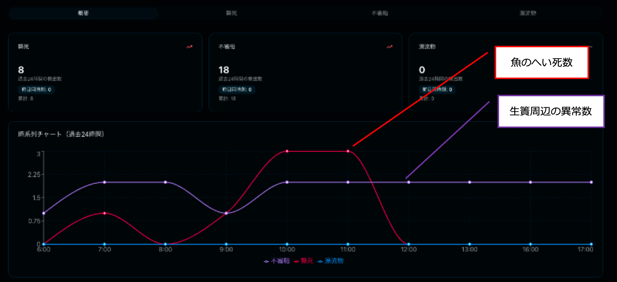 ② 画像認識 AI を利用した魚のへい死や生簀周辺の異常検知