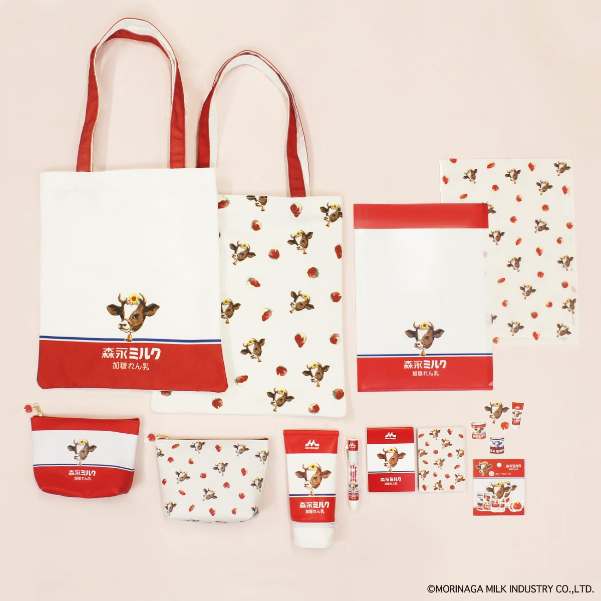 1919年の発売以降100年以上の歴史を持ち、いちご等のフルーツをはじめ、さまざまな食材に使える定番人気商品「森永ミルク 加糖れん乳」。牛のキャラクター「ミルリン」の顔でお馴染みのパッケージをモチーフとし、赤と白の温かい色味を基調にした文具・雑貨シリーズを発売いたします。いちごが食べたくなる寒い季節に、心がほっと温かくなるようなアイテムをお届けいたします。