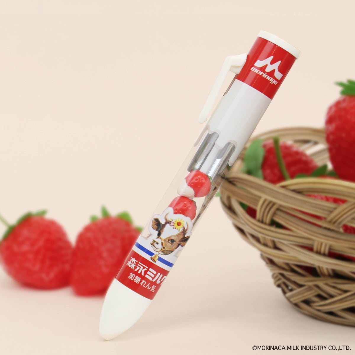 ペンを振ると、軸の中に入っているいちごのマスコットが上下に「サクサク」動きます。一番上のいちごにだけれん乳がついているという、遊び心たっぷりのかわいらしさも。