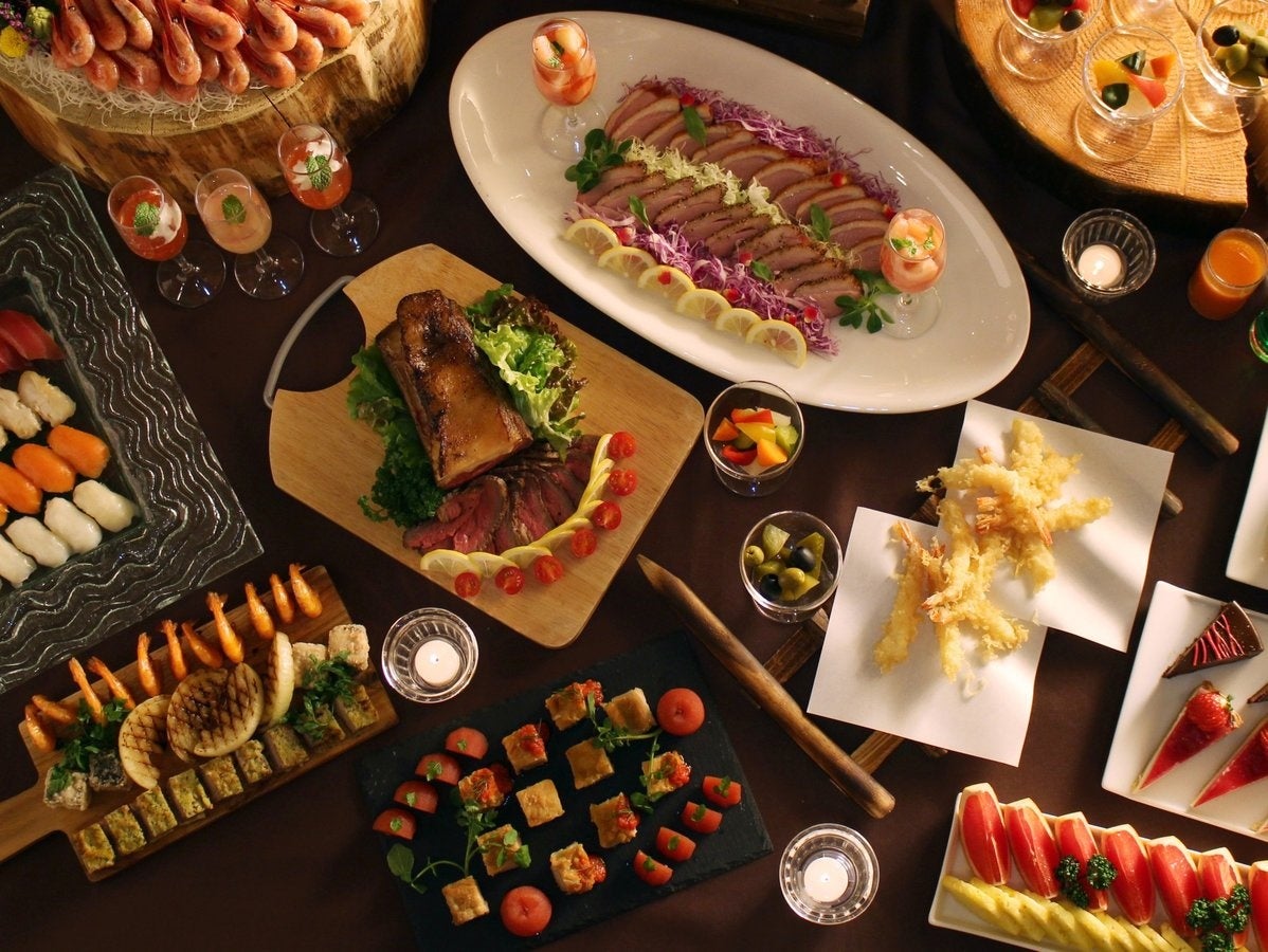 ホテルでは温泉にプールに一日中楽しめる施設が充実。夕食は和洋中の豊富なメニューに加えスイーツも充実のビッフェ型式でお召し上がりいただけます。