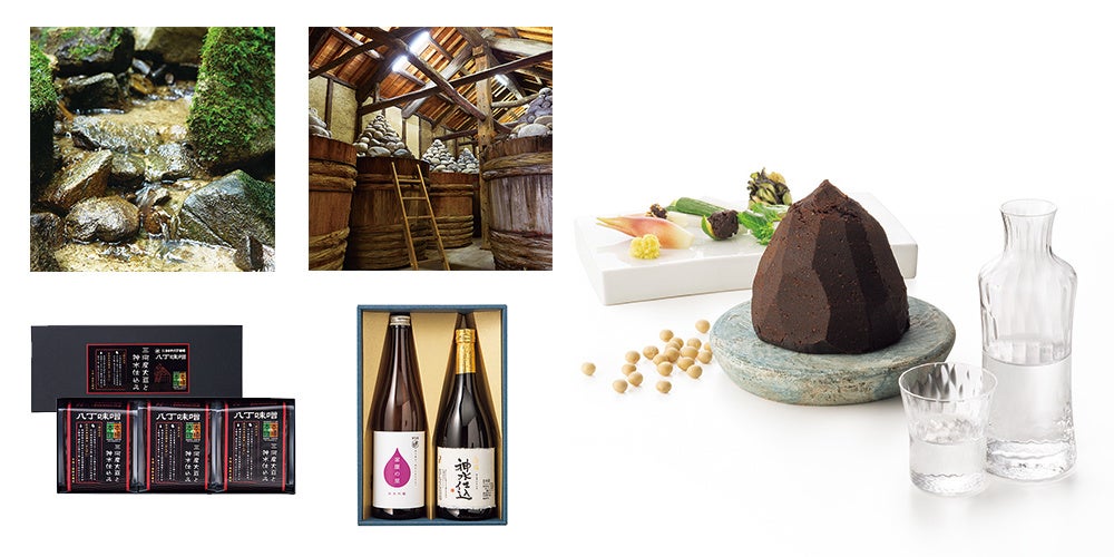 神水の地で江戸時代から蔵を構える〈柴田酒造場〉からは、すべてこの天然水で仕込んだまろやかな味わいの「純米吟醸・大吟醸」を。言わずと知れた江戸時代からの伝統と味を誇る〈まるや八丁味噌〉からは、年間1桶限定醸造・本場の本物「三河産大豆と神水仕込み」をお届けします。