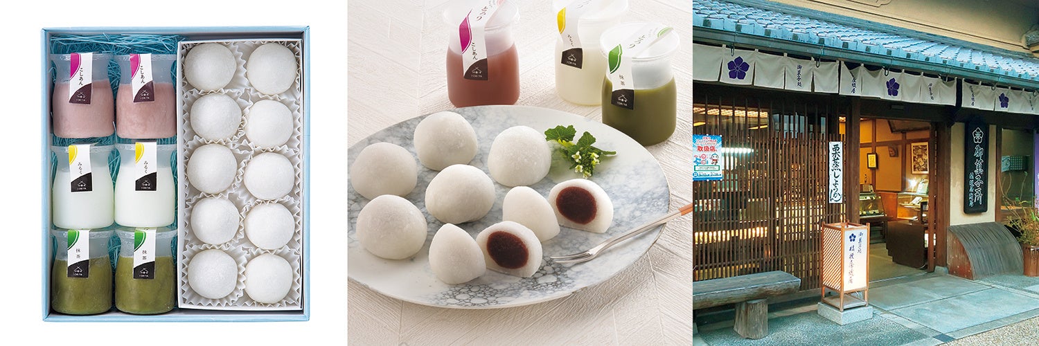 〈桔梗屋織居〉18代目主人の身内の餅による事故がきっかけで、10年の歳月をかけて”喉につまりにくく食べやすい”なめらかでトロトロの、もち米のかわりにうるち米を使った「おかゆ大福」を開発しました。究極のなめらか葛󠄀羊羹「とろり」との詰合せでお届けします。