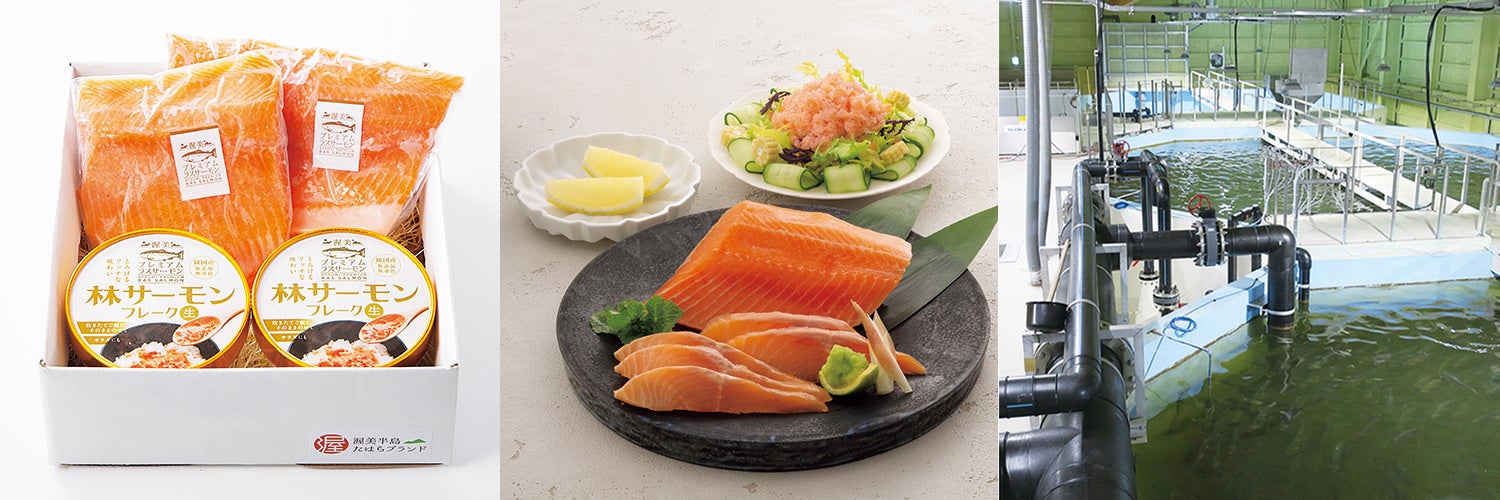 渥美半島の良質な地下海水を殺菌し、無菌状態の徹底された環境で最先端の養殖テクノロジーのもとに健康的・安全に育てられた「渥美プレミアムラスサーモン」。すぐにお召し上がりいただけるよう、皮引き・骨抜きした刺身用柵と生フレークをお楽しみください。