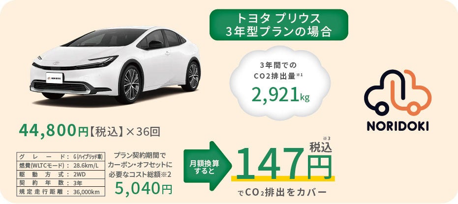 例)トヨタ プリウス G(HYBRID)2WD 月額(税込)44,800円(ボーナス加算額:0円)契約年数3年