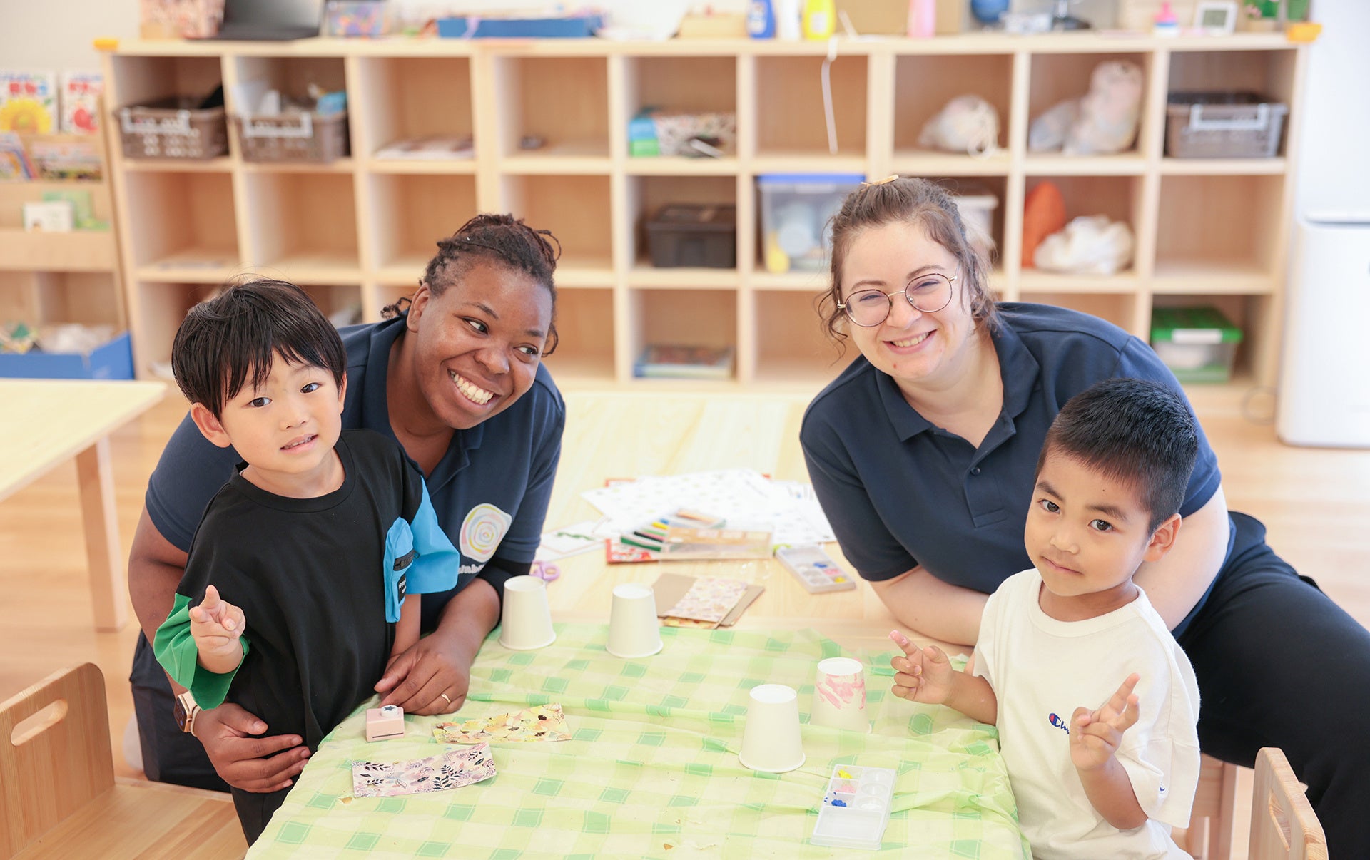 Rainbow Rose International Schoolのスタッフは、子どもたちに「教える」立場で接することなく、自ら発見・経験し、楽しみながら学ぶ子どもたちと伴走し、その成長を見守ります。スタッフは、子どもたちへの愛情、保育への情熱、そして子どもたちの成長を待つ忍耐力を持って、一人ひとりのペースに合わせた指導を行います。