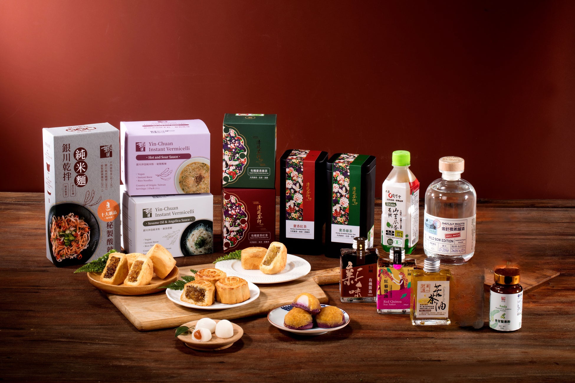 パイナップルケーキやスイートポテト、レッドキヌア醤油、ライスヌードル、ゴーヤ茶など