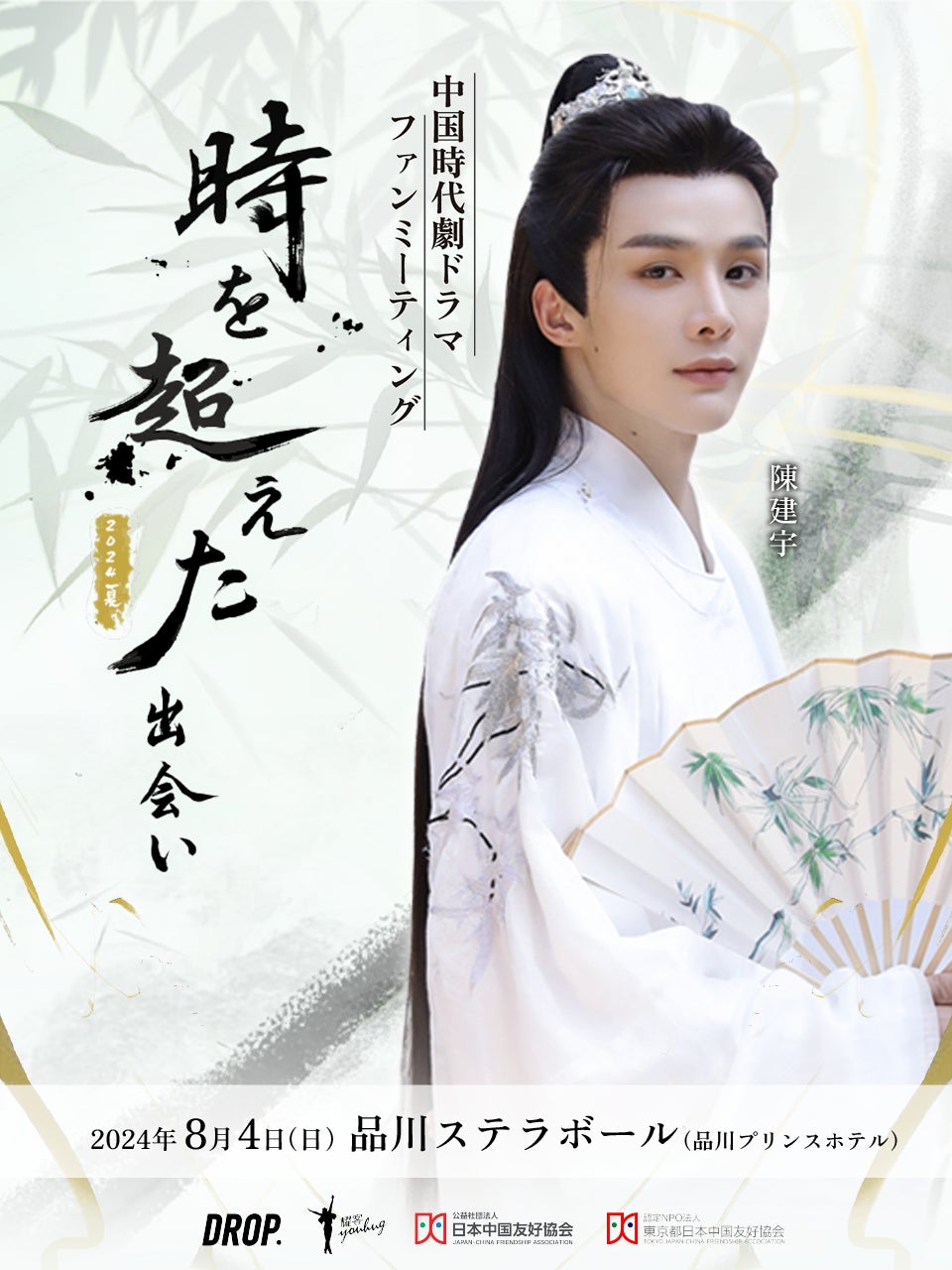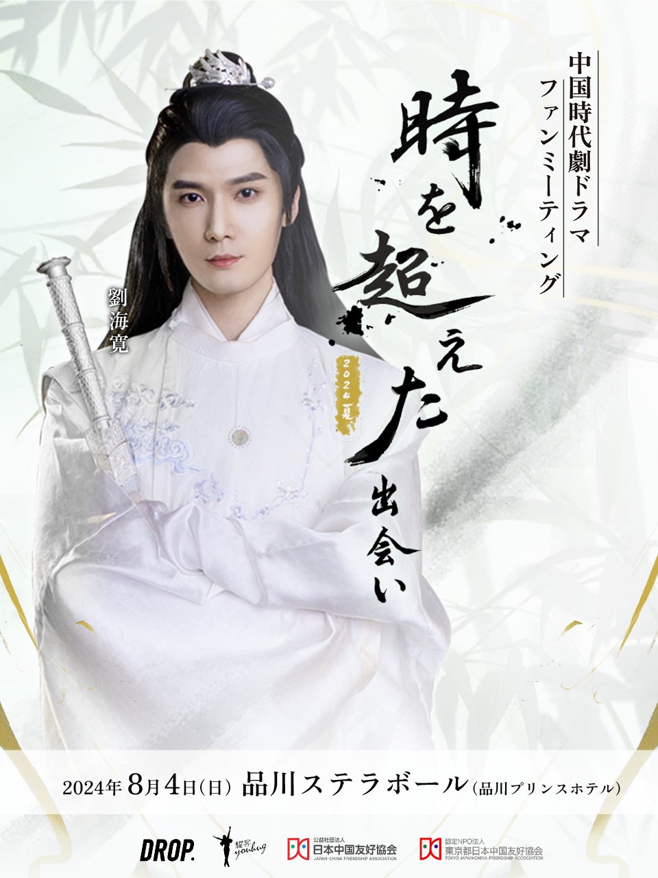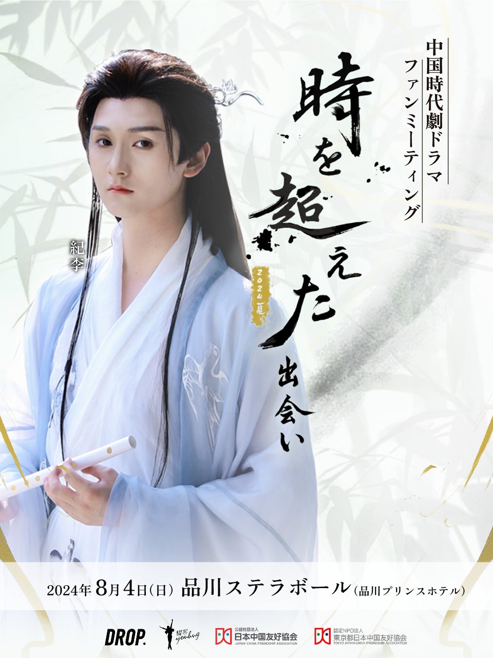 中国エンターテイメントの日本展開を行う株式会社ドロップは、中国の時代劇ドラマで活躍する中国俳優・中華ドル(中国アイドル)を集めた『中国時代劇ドラマファンミーティング~時を超えた出会い 2024・夏~』を2024年8月4日(日)に品川ステラボールで開催します。中国時代劇ドラマに関するファンミーティングは日本初の開催です。