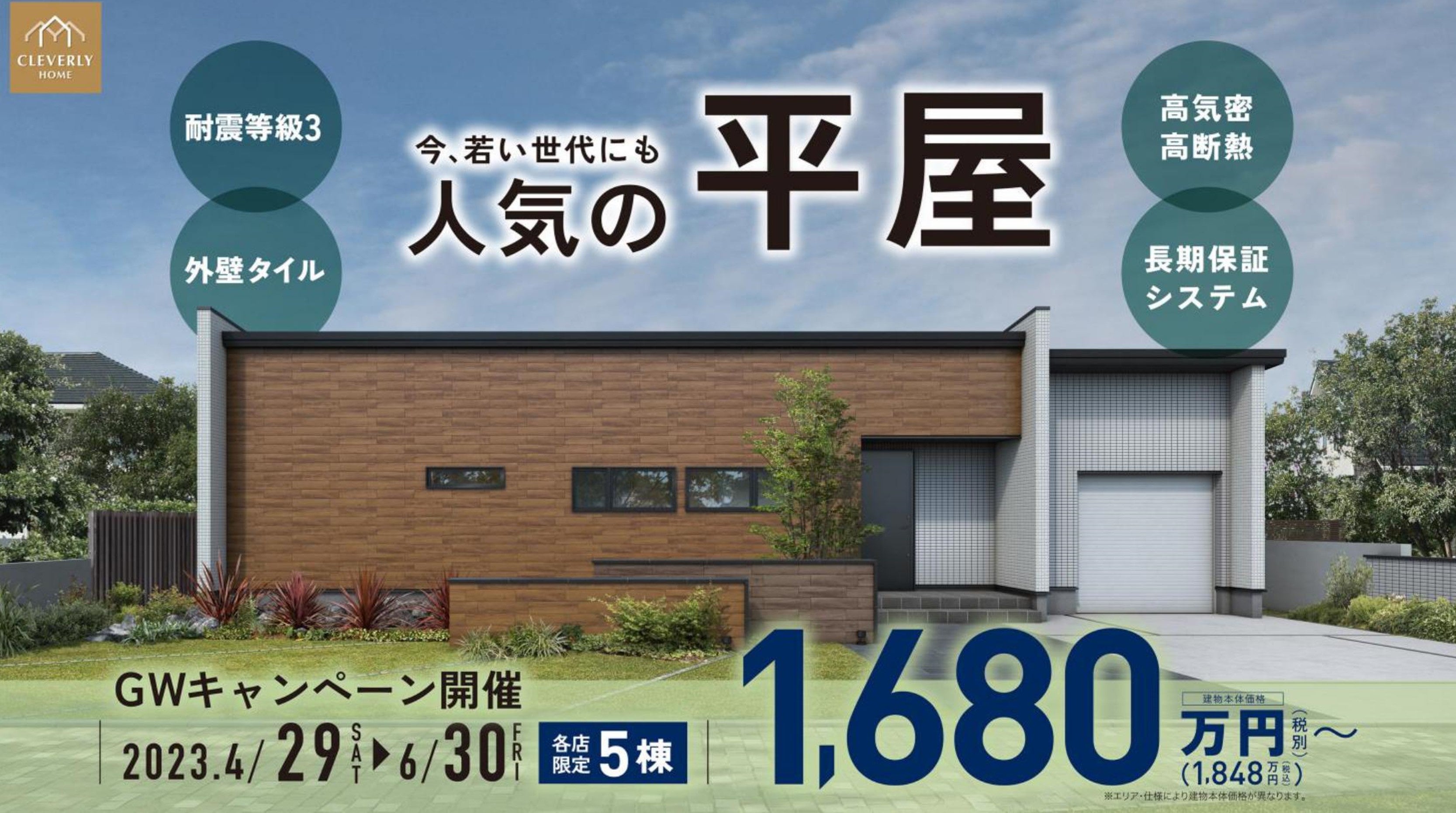 今、人気の高い“平屋”の限定商品をリリース。「GWキャンペーン」を全店で4月29日(土・祝)から開催。