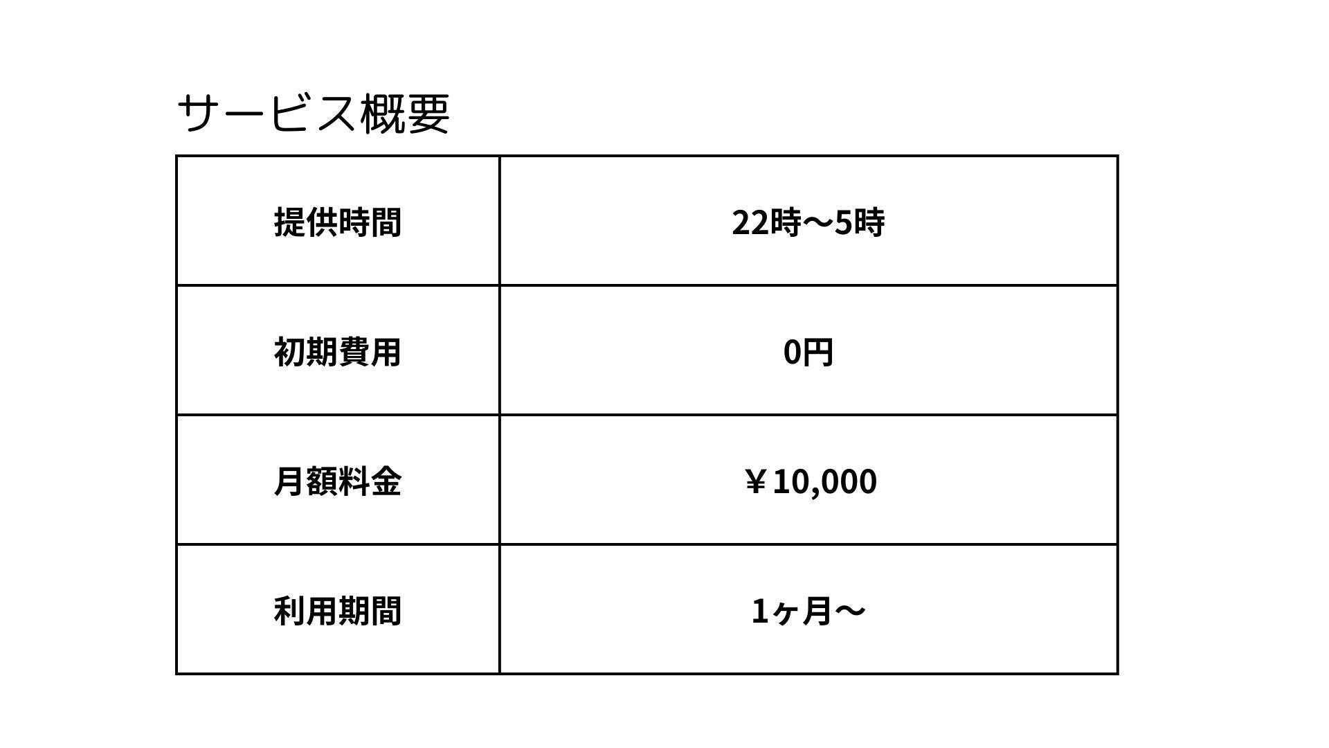 月額10,000円で利用が可能であり、利用期間は1ヵ月から選択できます。