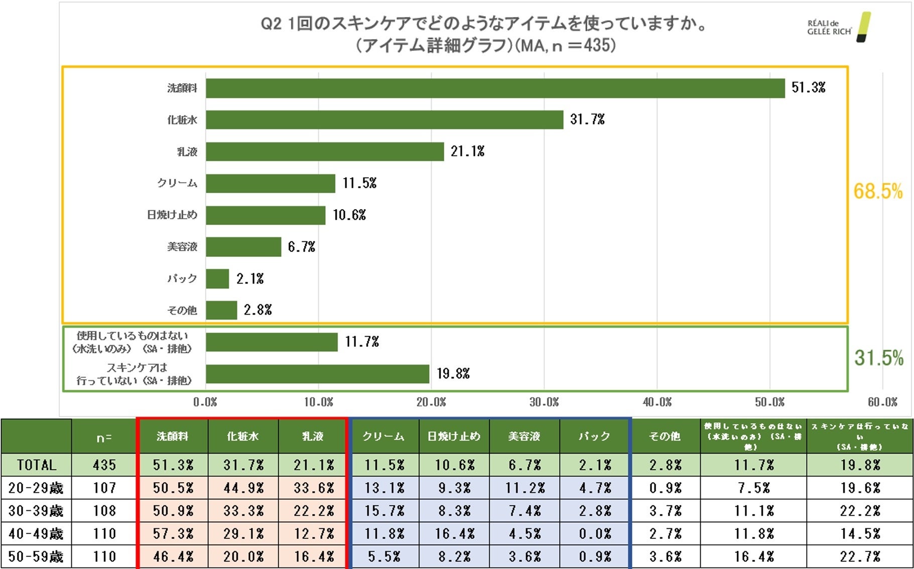 一方、クリームや美容液などの+αのアイテムの使用率は1割前後に。