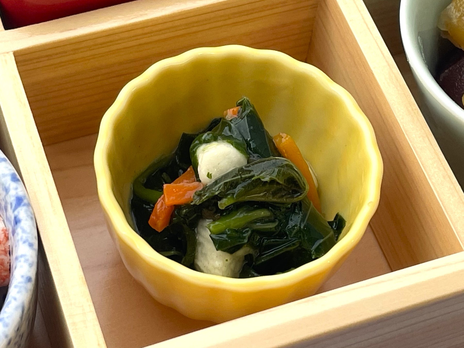 そのなかの一品、「モロヘイヤと長芋のお浸し」は栄養価の高いモロヘイヤを使用し、そのシャキシャキとした食感を活かした逸品です。様々な料理に合わせやすく、暑い夏にぴったりなさっぱりとした味