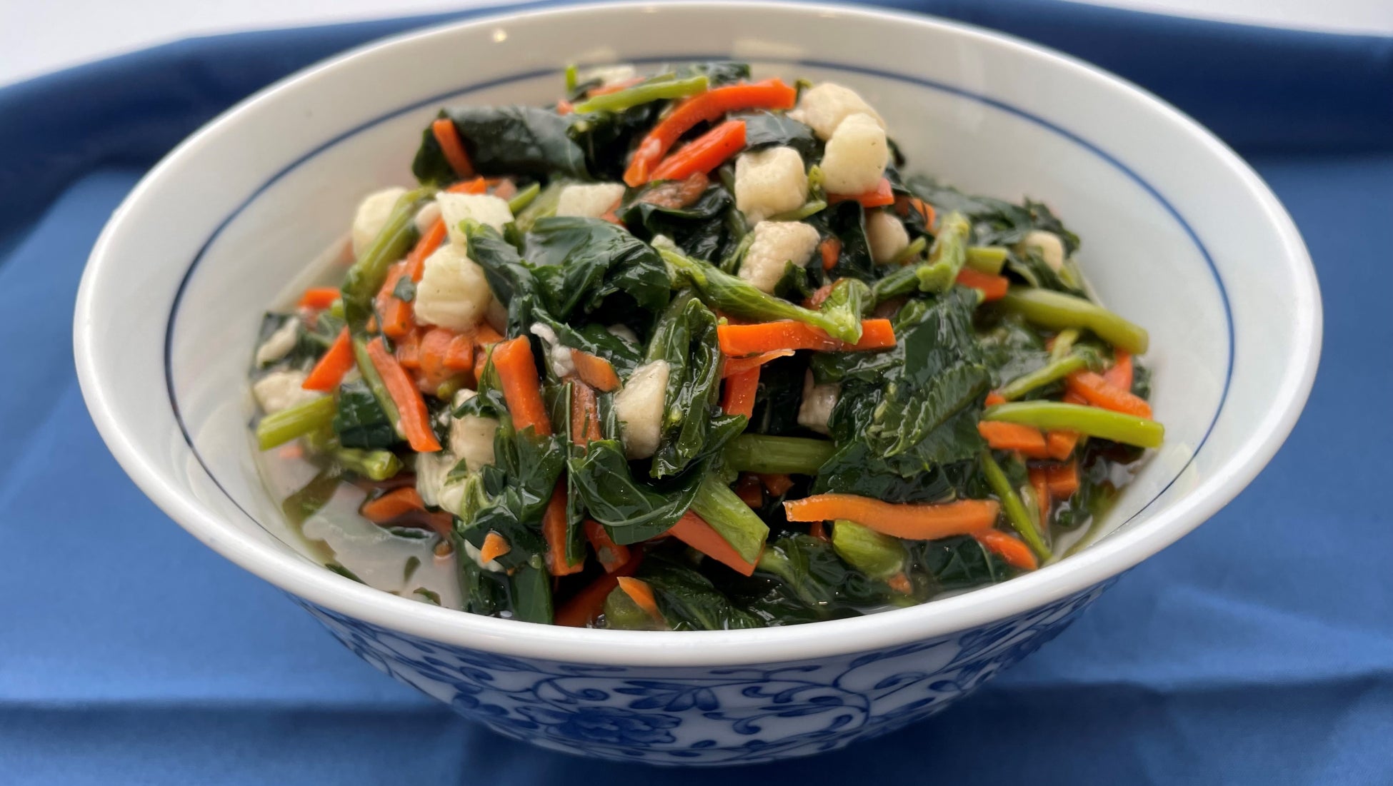 栄養価が高く「野菜の王様」とも呼ばれるモロヘイヤを使用し、その茎のシャキシャキ感を活かした逸品です。調理の手間を大幅に軽減、忙しい厨房での作業効率向上に貢献します。