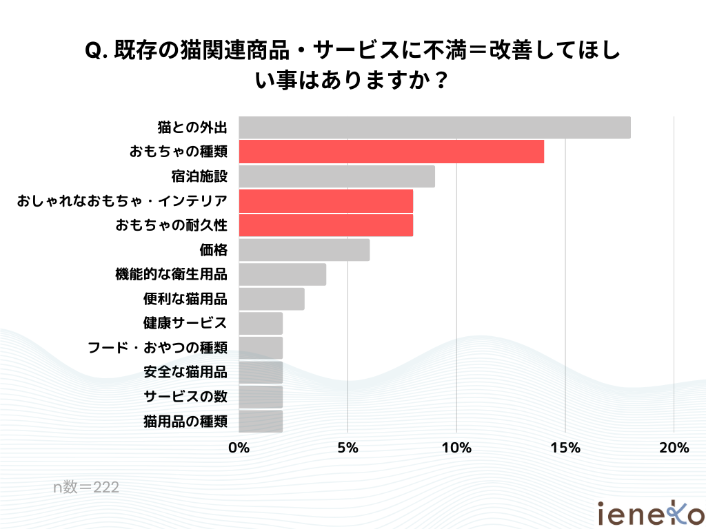 これはienekoが猫と暮らす222人のユーザーに独自調査を行い明らかになった結果です。