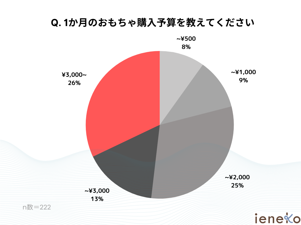 おもちゃ購入への全体平均予算は月¥3,000。26%以上の回答者が¥3,000円以上支出している