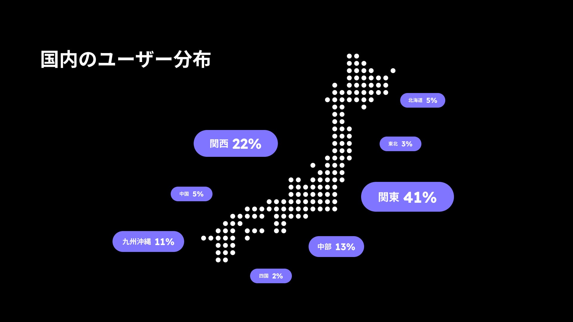国内では、関東エリア(41%)や関西(22%)、中部(13%)、九州・沖縄(11%)など、引き続き主要都市部を中心に利用が拡大しています。
