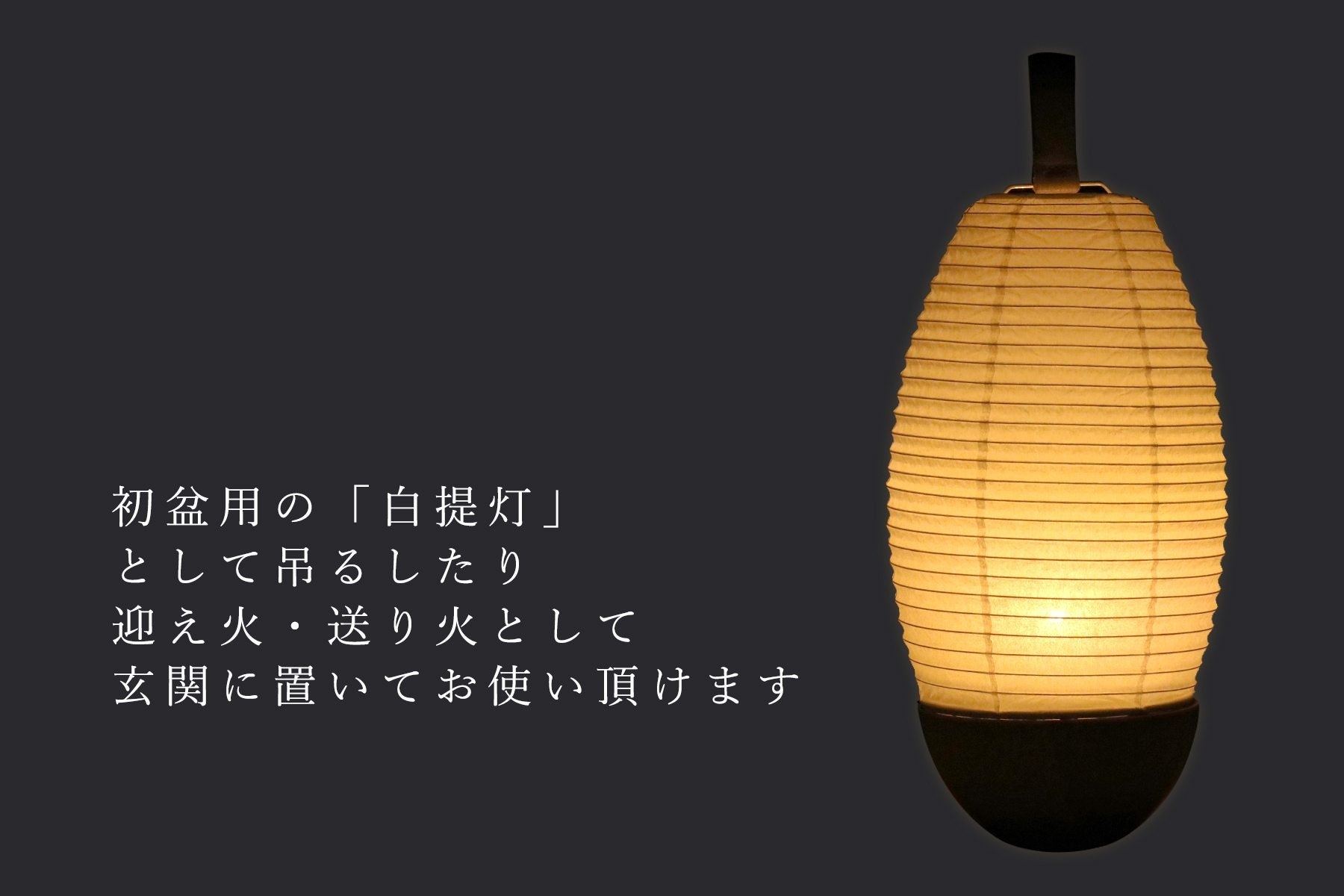 そのような伝統文化を引継ぎながら、もっと気軽に「迎え火」を行うことができる商品がLED電球で灯す「白提灯」です。玄関や軒先に吊るすのが一般的でしたが、近年では置いて飾る形状となり、電池式コードレスなど便利な白提灯もあります。故人を迎えるお盆の灯し火として、あまり「しきたり」にとらわれず飾られるようになりました。