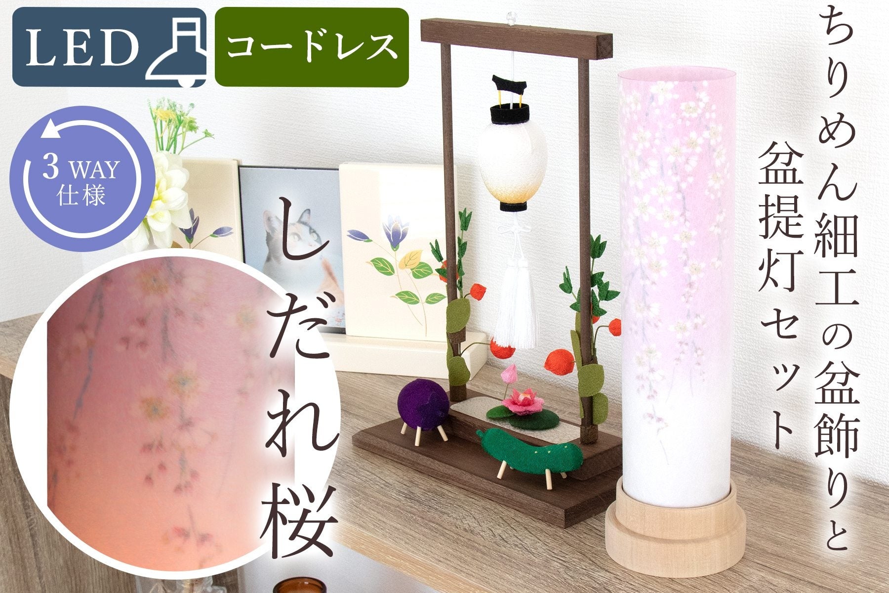 商品名:ちりめんお盆飾りセット&「3通りの使い方」白紋天 しだれ桜