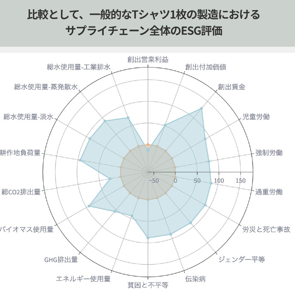 ①一般的なTシャツ1枚を製造するサプライチェーン全体のESG評価