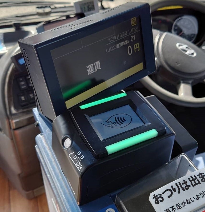 乗降車時それぞれ、車内に設置された専用機器にタッチ決済対応カードや同カードを設定したスマートフォン等をかざしていただくことでご利用いただけます。