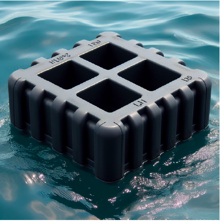 その新たな挑戦の場とは、海上などの水上における太陽光発電。その基盤を支える浮体素材として、不要漁具再生プラスチックを用いようとしているのです。