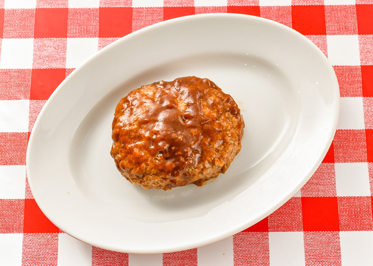▼トッピング「ハンバーグ」も、さらに大きく食べ応え抜群に!