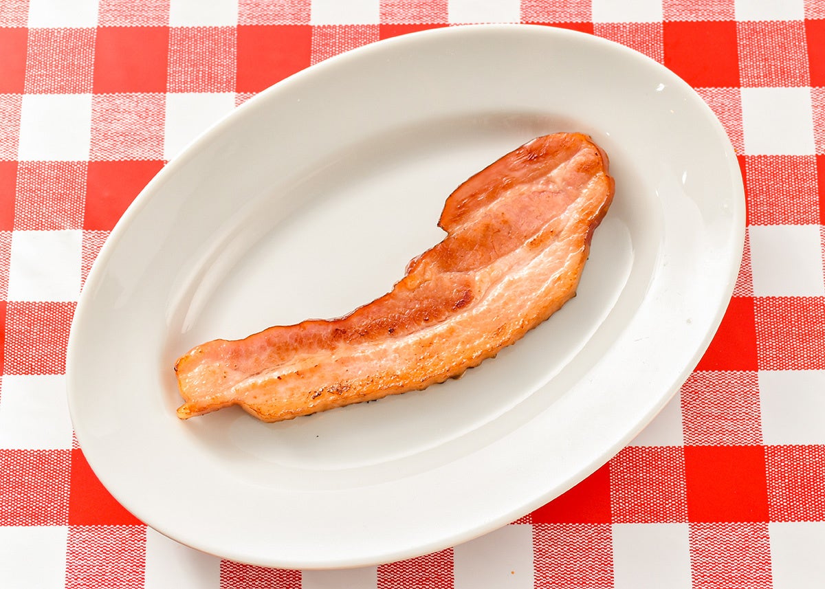▼トッピング「厚切りベーコン」はさらに厚く美味しく。吊るしベーコン独特の肉肉しさと食べ応えがアップしました