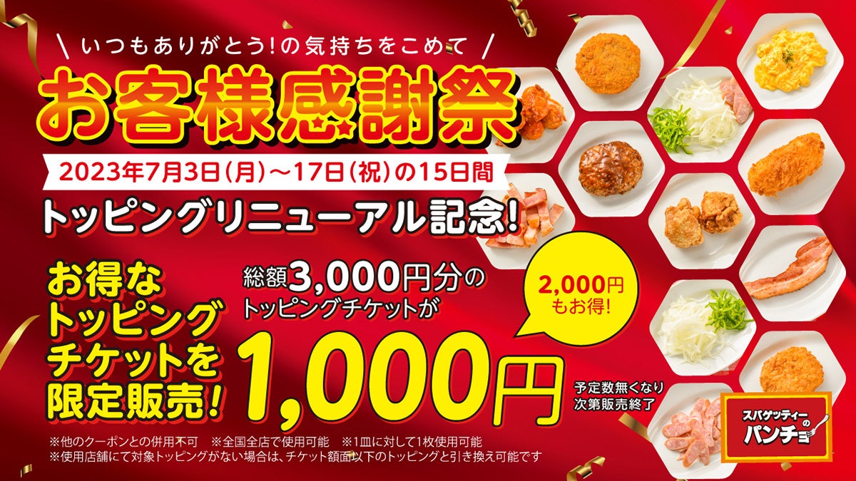 【超お得な15日間・お客様感謝祭】半額どころじゃない!! いつもの3分の1で試せるパンチョのトッピングチケットを7月3日から15日間限定販売