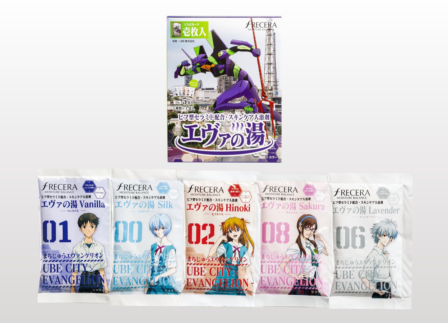 宇部市が2021年度から実施している「まちじゅうエヴァンゲリオン」は、エヴァとともに宇部の魅力をまちじゅうで体感していただくイベントで、その第4弾キャンペーンを盛り上げるべく「エヴァの湯 アソートパック5包入」を期間限定のコラボ商品として販売するものです。