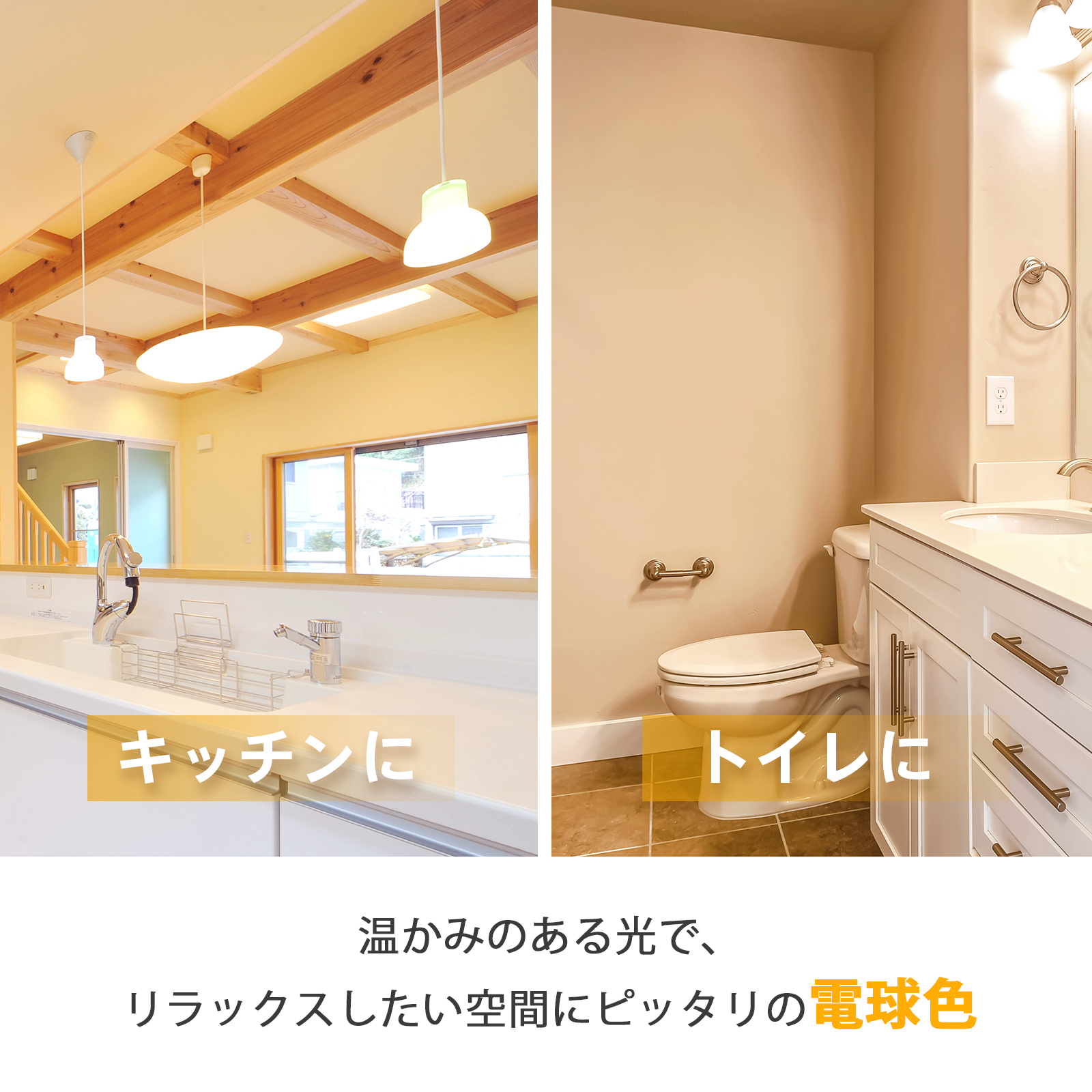 温かみがありリラックスできる「電球色」と、自然な光の色に近い「昼白色」。