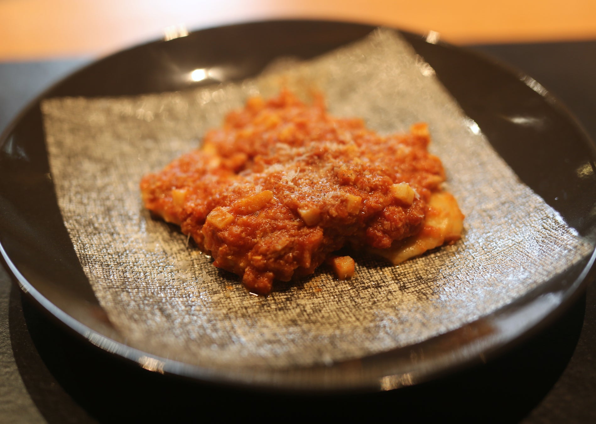 パスタ 五島地鶏しまさざなみのラビオーロ ボスカイオーラソース