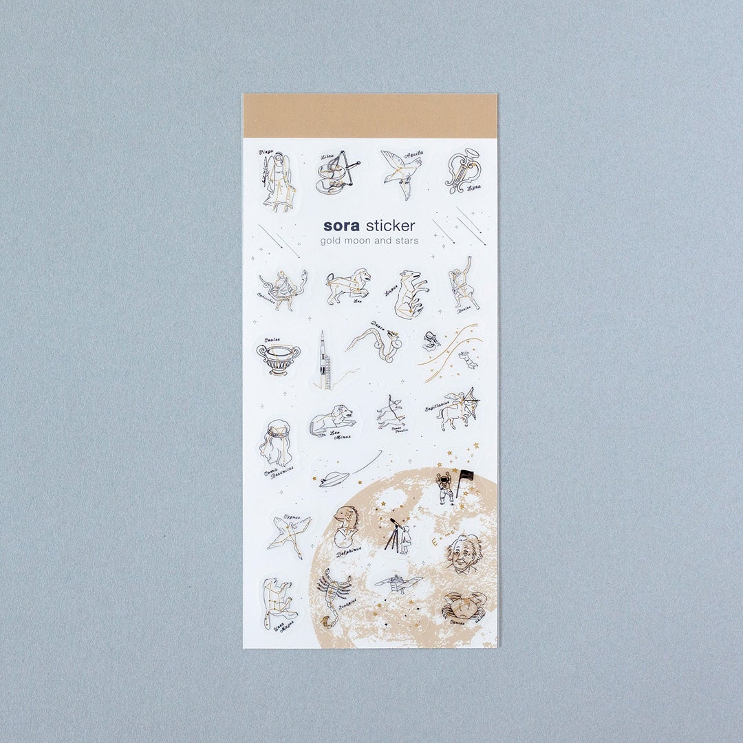 金箔・銀箔が美しい透明なシールです。可愛い星座のイラストの上で、星の形の箔押しが上品に光り輝きます。星座や宙の記念日、ロケットなど宙にまつわるものを集めました。ラッピングやお手紙などのデコレーションにもおすすめです。