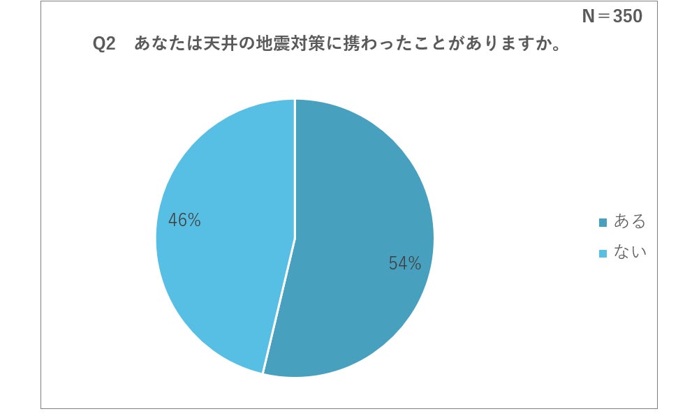 回答者のうち、実際に天井の地震対策に「携わったことがある」のは54%でした。