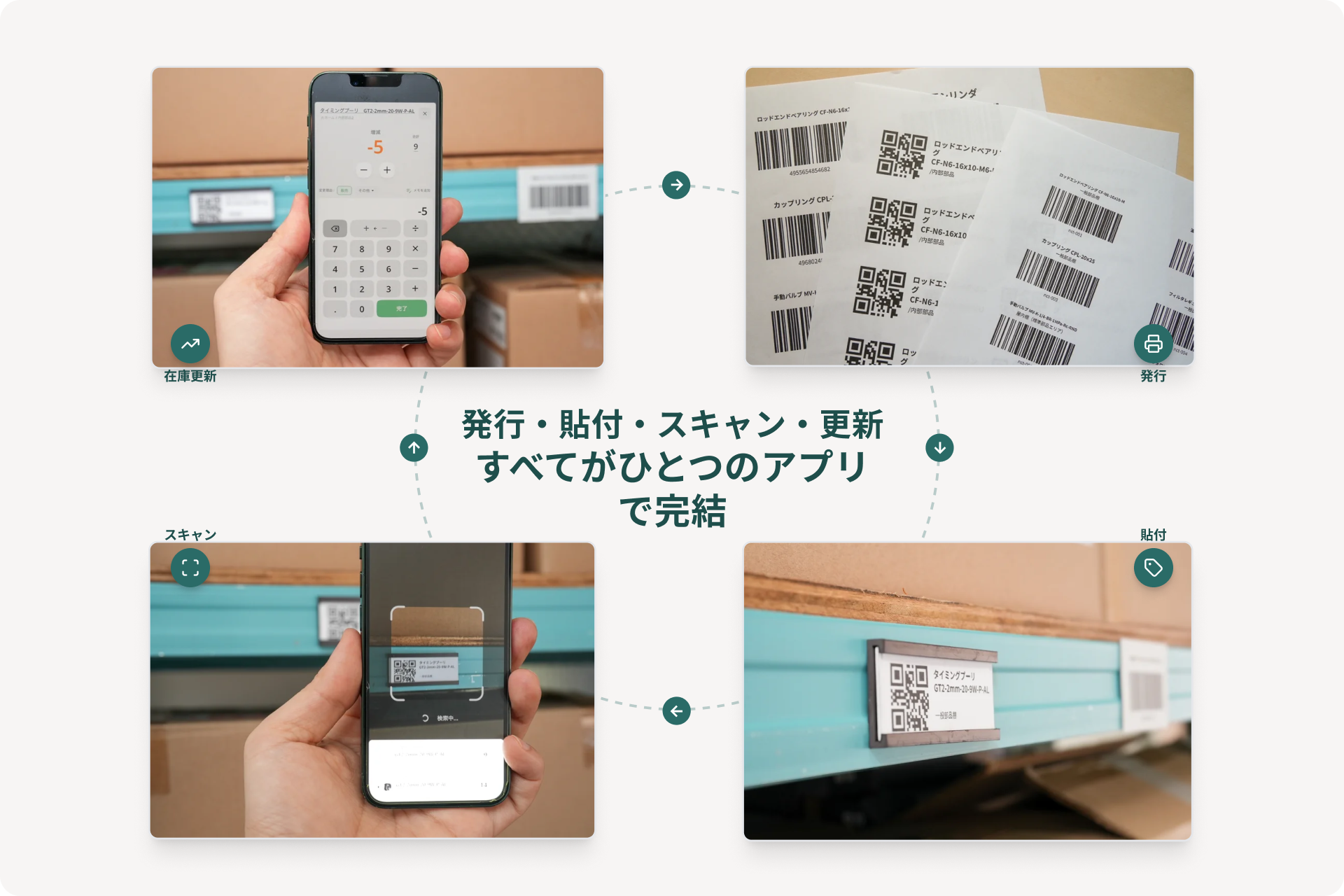 2.発行 → 貼付 → スキャン → 在庫更新が直感的につながる