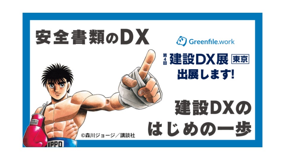 第4回 建設DX展 大阪に続き、特別企画としてボクシング漫画の金字塔『はじめの一歩』とのコラボレーションを実施します。森川ジョージ先生のご協力のもと、このコラボを通じて建設業界に新しい風を吹き込みたいと考えています。
