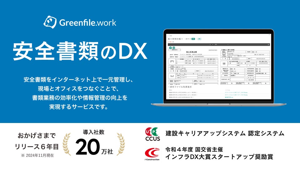 Greenfile.workは、安全書類をインターネット上で一元管理し、現場とオフィスをつなぐことで、書類業務の効率化や情報管理の向上を実現するサービスです。