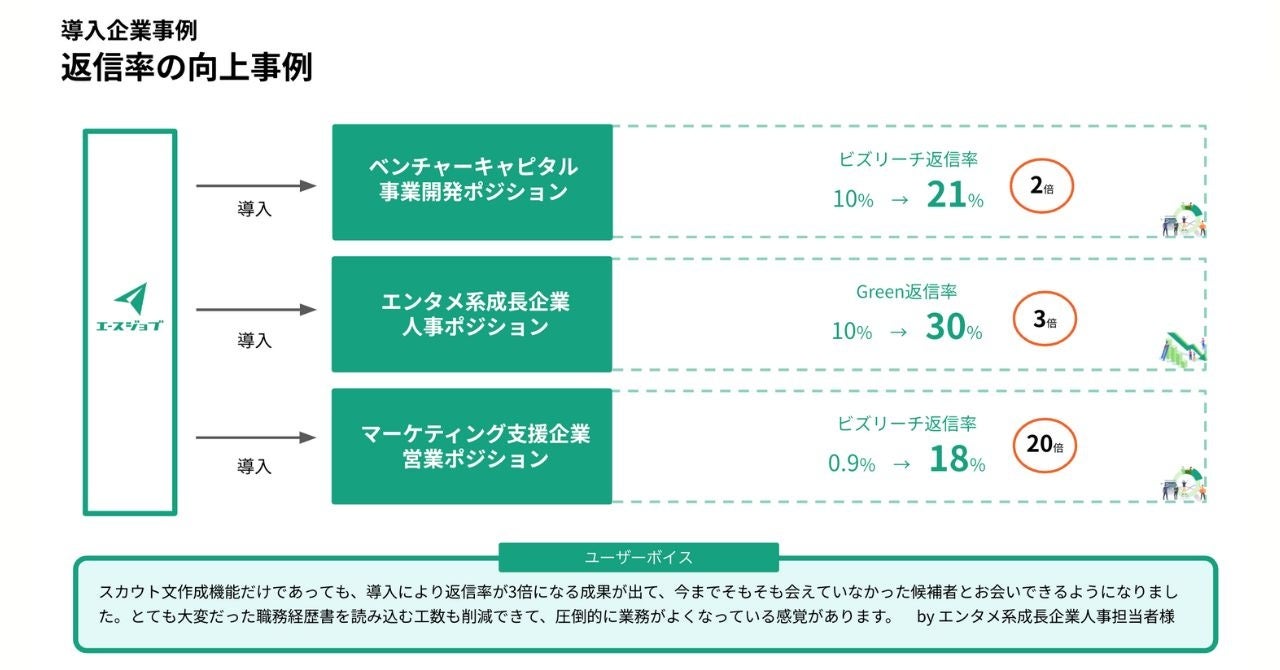 2024年5月のβ版ローンチ後、プロダクトがもたらす価値の証明が順調に進みました。スカウトの返信率は最大20倍となり、採用コストおよび採用業務効率の劇的な改善成果が出るなど、良い価値をもたらすことができております。