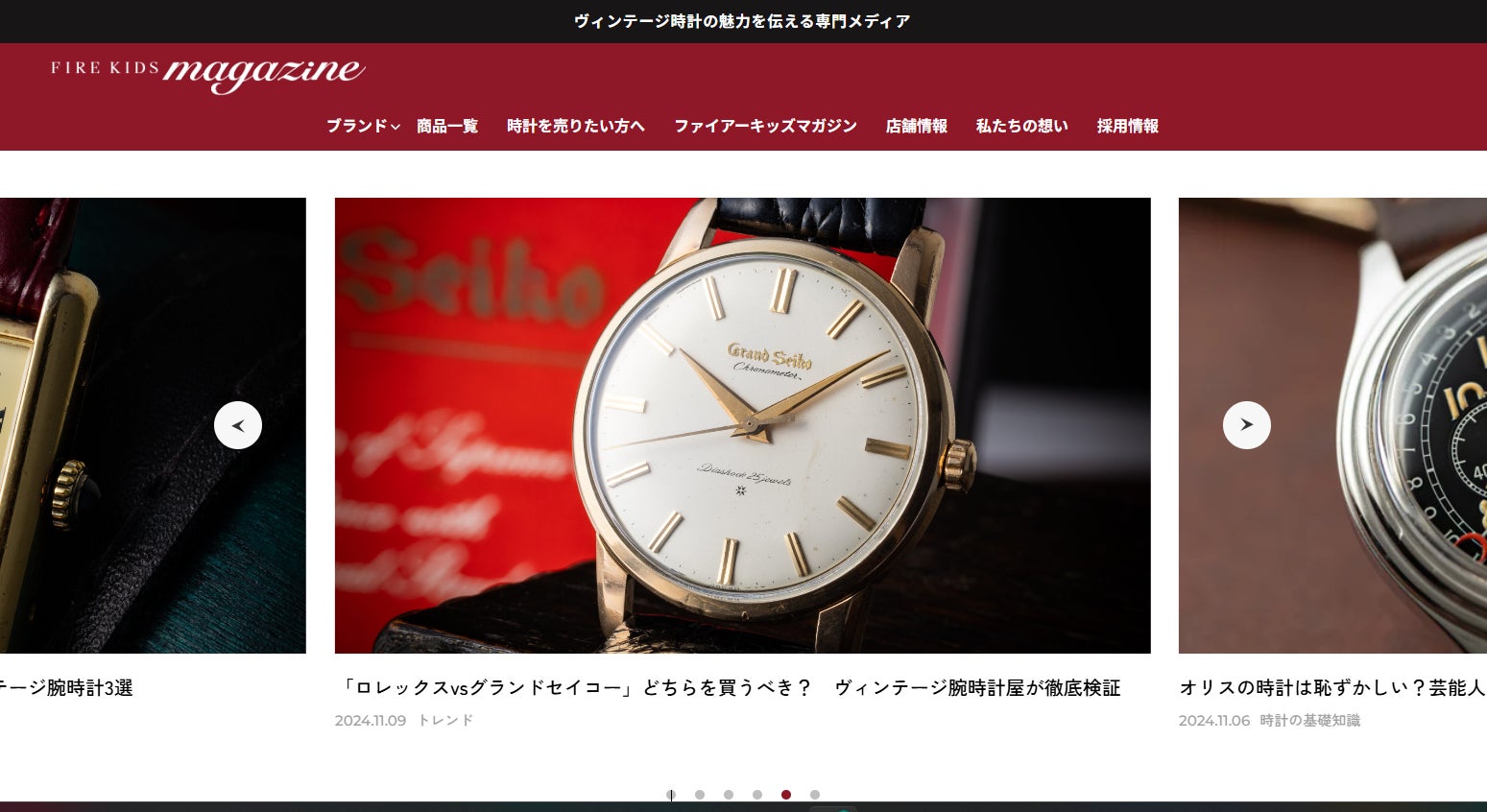 「ファイアーキッズマガジン」は、独自の視点や切り口で腕時計の魅力をお伝えするウェブメディアです。2022年3月に自社ウェブサイト内にメディアを立ち上げ、ヴィンテージ時計を主軸に、幅広い層に対して腕時計を楽しんでいただくためのコンテンツを配信してきました。昨年3月には、リニューアルとして、コンテンツの品質向上と発信力の強化を行いました。現在では、時計愛好家をはじめとする多くの方に「ファイアーキッズマガジン」をご愛読いただいています。
