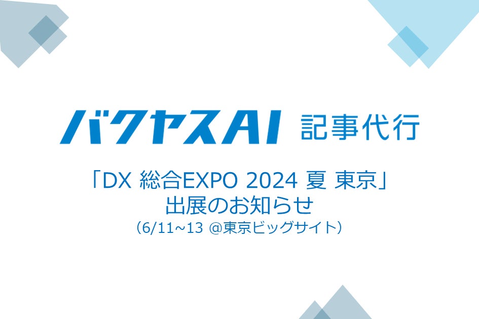 弊社は、文章作成に特化したAIを活用した、最先端のコンテンツSEOサービス「バクヤスAI記事代行」をご紹介いたします。弊社ブースにお越しの上、無料体験登録をしていただいた方には10,000文字のSEO記事を無料で執筆・進呈いたします。