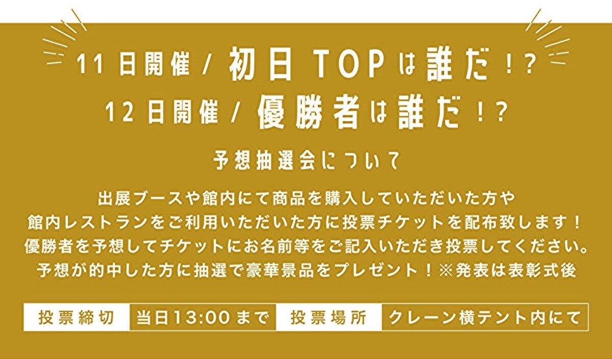 当日のイベントの目玉企画として大会の優勝者を予想する「優勝者は誰だ?!」を開催予定。