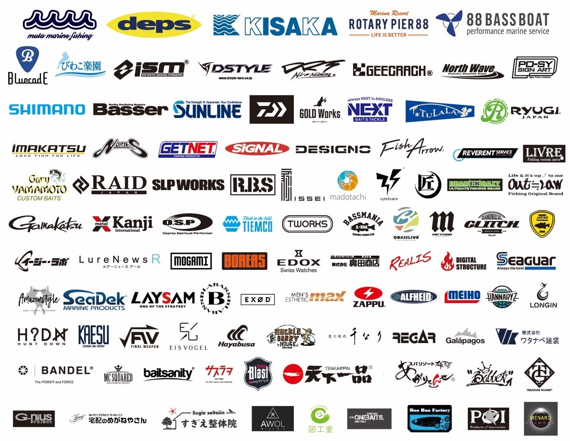 Muta MARINE fishingやdeps等、人気メーカーのブースが多数出展。