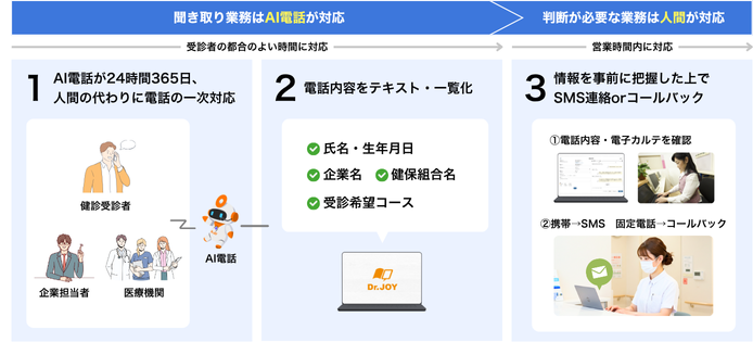 Dr.JOY株式会社(本社:東京都港区、代表取締役社長:医師 石松 宏章、以下「当社」)は、病院特化のAI電話に「健診予約シナリオ」を追加し、提供を開始します。