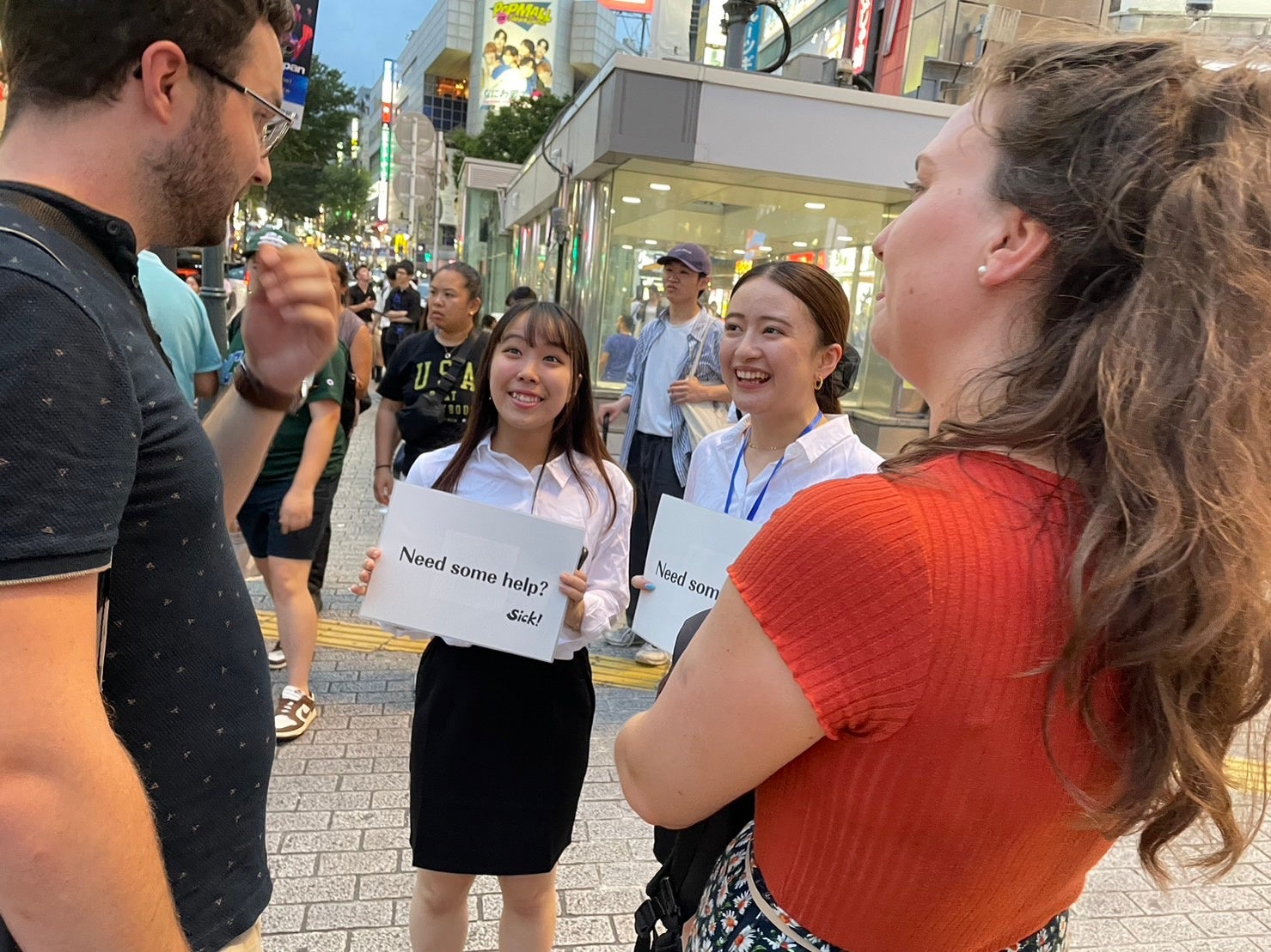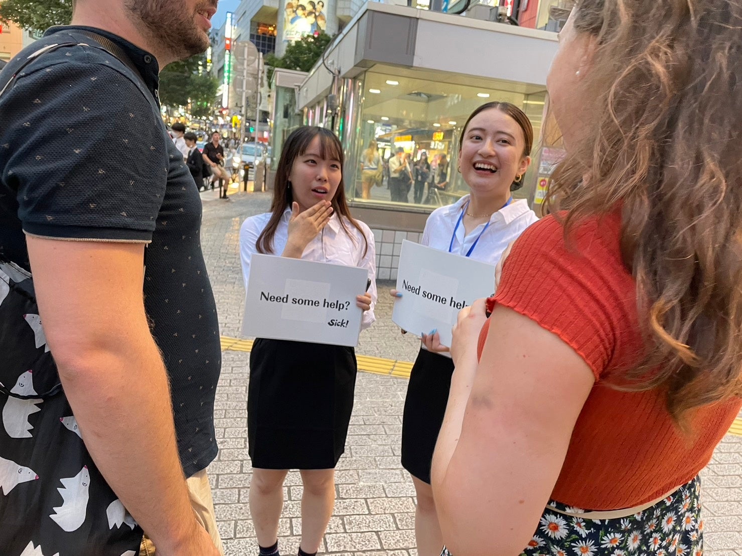 Sick!でもお会計の際や店舗での会話で翌日の観光ルートの道順や最短での移動方法を聞かれることも多くあり、その経験から渋谷に訪れる観光客のために出来ることとして、今回の『困ったらなんでも聞いてOK』キャンペーンをスタートしました。
