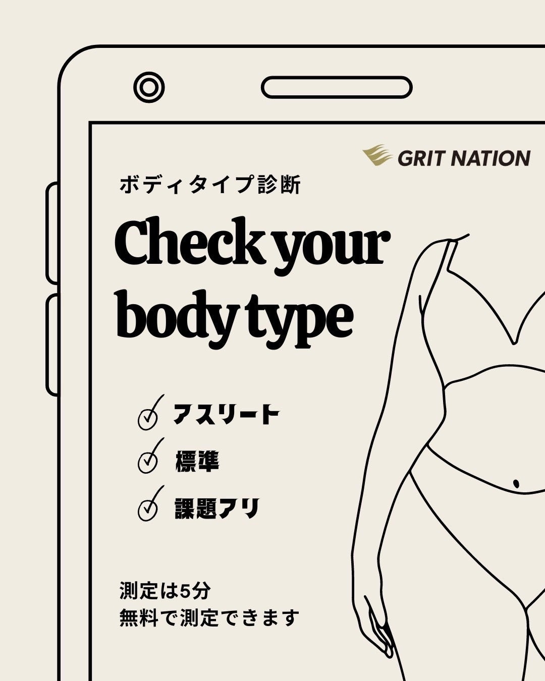 「進化を楽しむ」をコンセプトとしたスポーツカルチャーブランド『GRIT NATION』(東京都渋谷区 代表取締役 林周一郎)は、体重計のように乗るだけで体重や部位別筋肉や筋肉量・栄養評価・ウエスト周りなどの部位別採寸・部位別体脂肪率がわかる体組成計『Inbody』を使用した「ボディタイプ診断」をGRIT NATION Shibuyaにて開催中です。