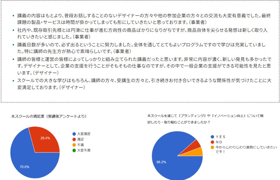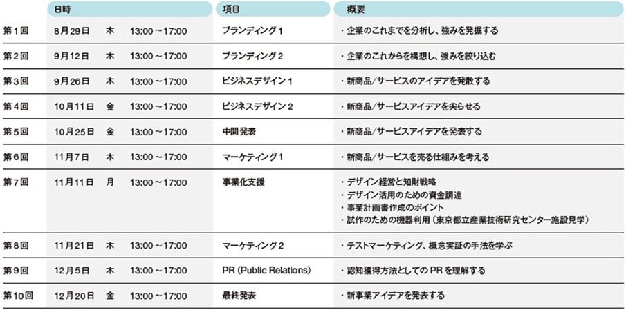 同スクールは、経営にデザインの要素を取り込みながら「新しい商品」や「新しいサービス」を創出する手法を学び、そのプロセスを繰り返し実践していけることをゴールに据えた即戦力養成型スクールである。企業経営者のみならずデザイナーも受講生として参加し、対等な関係性で講義に臨むのも特徴の一つ。加えて「超実践型スパーリング形式」に代表される特徴的な講義内容や、スクールが目指す″実践型”デザイン経営ともいうべき独自のスタイルを知ってもらうために、企業経営者、デザイナー双方に向けたプレセミナーを開催する。