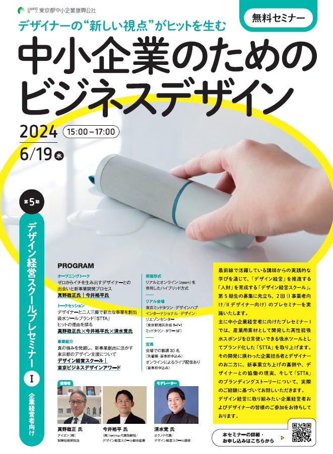 東京都が実施する「デザイン経営スクール」が今年も開講する。企業経営者とデザイナーが共に学び、協働体験を通じて「デザイン経営」を習得できる″学びの場”として今年5期目を迎える同スクールは、″中小企業の救世主”として「カンブリア宮殿」(テレビ東京)でも紹介されたkenma・今井裕平氏が昨年に引き続き総合監修を務める。