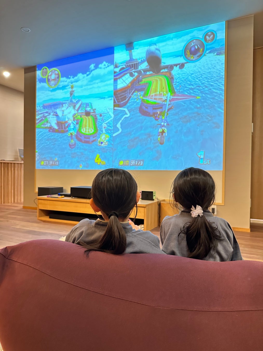 ・ 150インチ(横幅3.2m)の大画面スクリーン(超単焦点プロジェクター)とサウンドバーによる大迫力音響